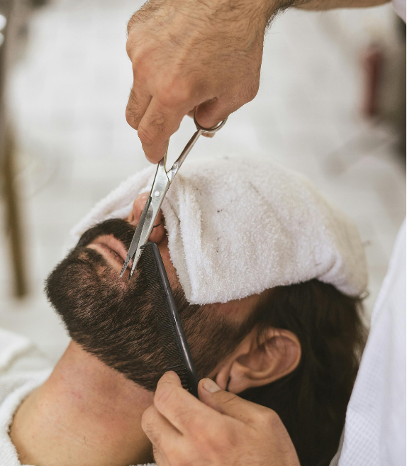 Service complet alliant coupe et barbe, pour un look soigné.